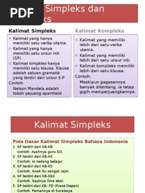 5 Contoh Kalimat Simpleks Kompleks from imgv2-2-f.scribdassets.com Kalimat kompleks adalah gabungan dari beberapa kalimat simpleks atau klausa. Jadi, kalimat simpleks merupakan kalimat yang hanya terdiri dari satu verba utama. Kalimat simpleks adalah sebuah kalimat yang hanya memiliki satu verba utama. Contoh dari jenis kalimat yang dipelajari adalah kalimat simpleks dan kalimat kompleks. Jika dilihat dari namanya, kalimat ini mungkin saja adalah kalimat yang sangat sederhana. Untuk lebih mengetahui atau memahami mengenai kalimat simpleks. Di bawah ini terdapat beberapa contoh kalimatsimpleks, yakni Kalimat kompleks sudah pasti lebih kompleks dibandingkan kalimat tidak heran, kalimat simpleks lebih mirip dengan kalimat efektif.
